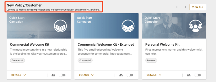 Scroll down to the "New Policy/Customer" section, locate the Commercial Welcome Kit. There are two versions of this campaign.