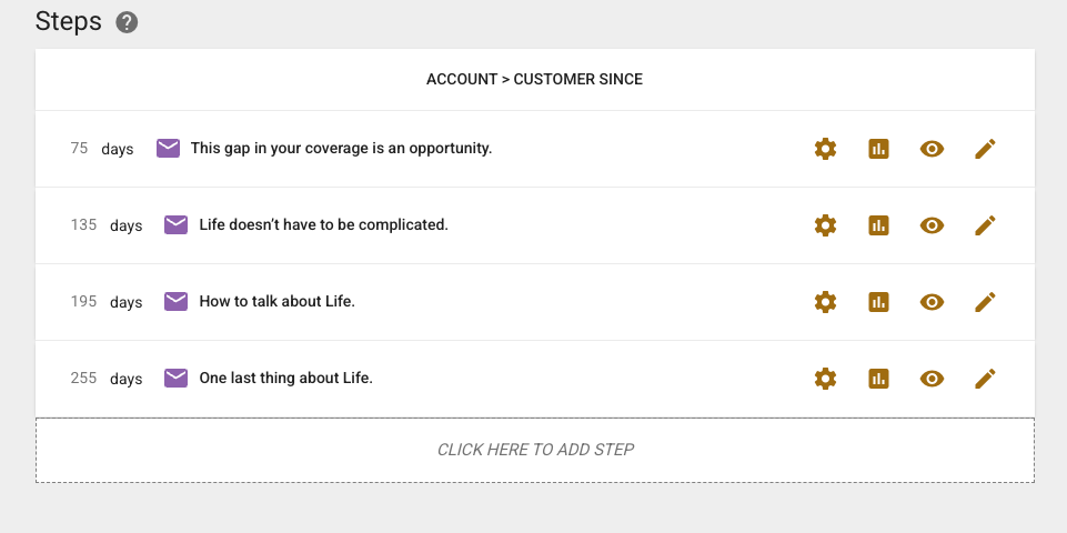You can click on the pencil icon next to each of the emails in the campaign to edit the content of that specific email. Beyond editing the email content, there are a few other things you can edit in the "Steps" section.