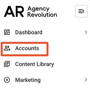 You'll want to navigate to the Accounts tab on the left sidebar within your Agency Revolution workspace. Then, search for the specific account you want to remove from a campaign.