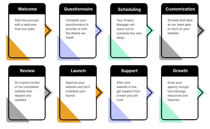 Welcome to Agency Revolution! Here, you’ll find a quick overview of the Onboarding process for your Forge website. Our goal is to create an amazing, beautifully designed website that reflects your insurance agency! In order to do this, we follow a simple, streamlined process.