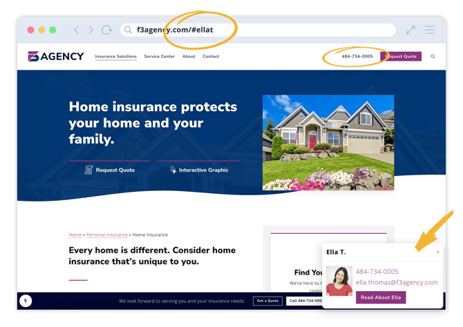 The Forge website platform includes Hello Producer, which allows you to use special links to show your photo, name, email address, and phone number across your entire site. It’s a great way for you to maintain your relationship with prospects and clients while also reinforcing the personal touch your agency offers.