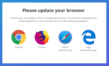 Note: Canva will not work on Internet Explorer, as this service does not support that particular browser.