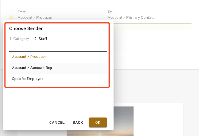 Options include Account Rep, Producer, or a Specific Employee who has been configured in Fuse.